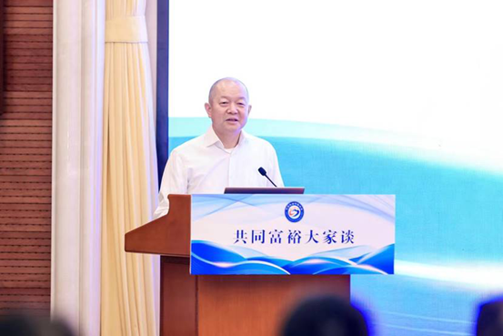 国家发改委原党组成员兼宏观经济研究院院长宋晓梧在演讲中重点探讨了民营企业在推进共同富裕过程中的社会责任问题。